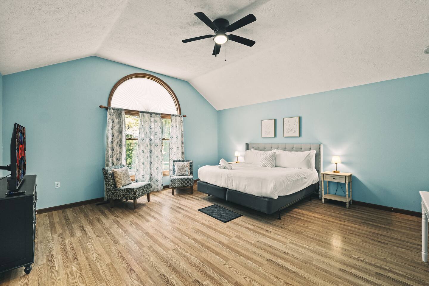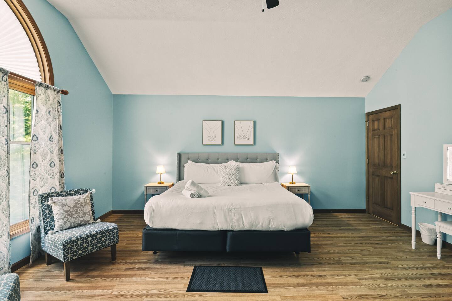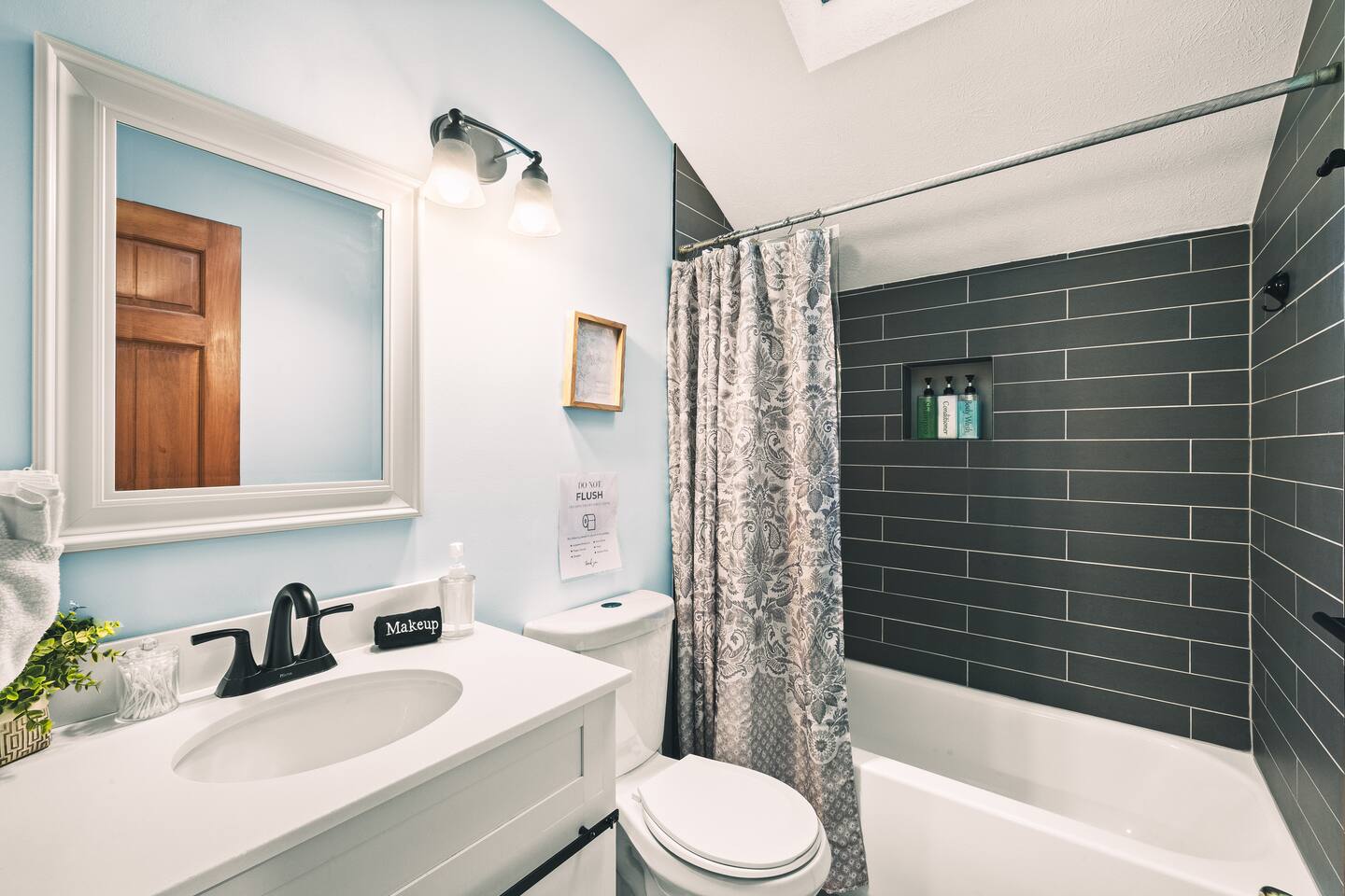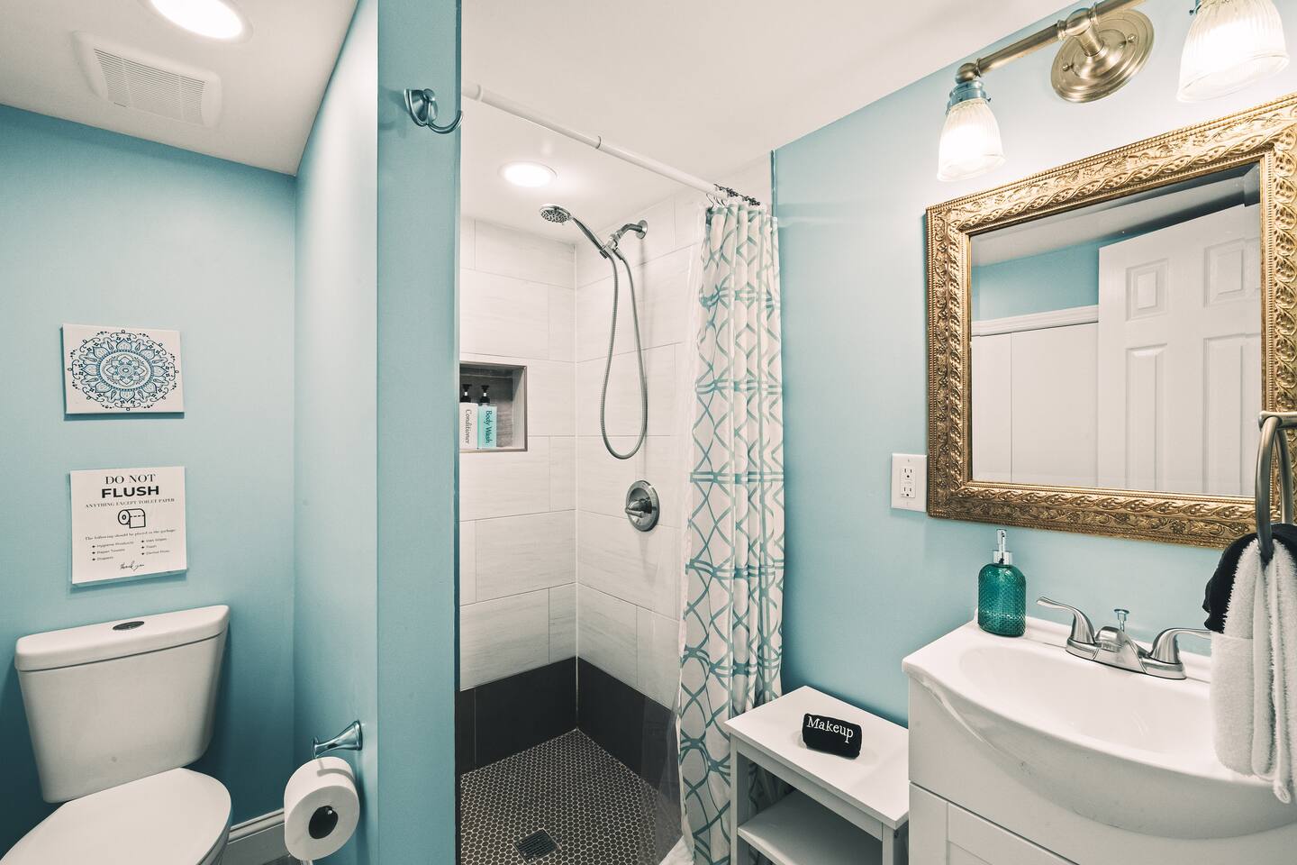 KEY FEATURES: ☀ 4 bedrooms, 7 beds plus queen sleeper sofa. Sleeps 12 very comfortably. ☀ 3 full baths, 1 half bathroom ☀ Only Small and Medium-sized dogs allowed (up to 50 lbs.) ☀ Central air for heating and cooling throughout the house. ☀ Modern kitchen; stainless steel appliances and kitchen island seating open to the dining area ☀ Sunny living room; comfy furniture, propane fireplace, flat-screen Smart TV ☀ Game room with pool, ping pong, wall mount hook & ring game, smart TV & seating area ☀ Great outdoor space: deck with propane BBQ, & table seating for 6, lounge seating for 5 around the propane fire table with propane space heaters! ☀ High-speed Wi-Fi ☀ Washer + dryer ☀ Free onsite parking in the driveway for up to 4 cars. ☀ HOA Access. ☀ After booking, we will send you a form to complete so we can submit the HOA renter permit on your behalf. ☀ Easy access to nearby attractions; Camelback Mountain, indoor water parks + outdoor activities ☀ Early or late check-out provided at $25/hr, only if we confirm it can be accommodated. ✅ Easy Check-In Process for your rental agreement, ID verification, & security hold It’s just like when you check in at a hotel and give your ID and security deposit to the front desk, except our front desk is online! It's super easy to complete on your phone! We use a web-based system called Happy Guest, and you’ll receive a personalized rental agreement, ID verification, and options of a simple security hold of $1,000 (which is not a security deposit) or a non-refundable $45 damage waiver fee to receive your arrival instructions. It’s simple: finish these steps, and you’re all set to enjoy your stay! Note: arrival info won’t be sent without completing these steps, and refunds aren’t possible if skipped. Your personalized guidebook will give you all the info about the home, my favorite local spots, automatic early check-in notifications, and sometimes even late checkout! You can even share it with friends and family! Got questions? Just message us anytime! ☆☆ BEDROOMS & BATHROOMS ☆☆ Our comfortable three (2) story, plus basement, home features four (4) bedrooms, each designed to provide a restful and productive stay. One bedroom is on the first floor with the remaining three (3) upstairs on the 2nd floor. The house has three (3) full bathrooms and one (1) half bath. All bedrooms provide plenty of natural light, bedside tables with lights and chargers for all your device charging needs. Each bedroom offers ample storage space for your belongings in the accessible closets, dressers, and luggage racks. The first floor bedroom has a Queen size bed. The three (3) bedrooms upstairs consist of a master bedroom with King bed and ensuite full bath, bunk beds with one (1) full and one (1) twin bed, bunk bed with three (3) twin beds, one being lofted. Additionally the house has three (3) bonus beds, one (1) Queen sleeper sofa in the living room, one (1) daybed in the loft and one (1) full size futon in the basement. ☆☆ KITCHEN & LIVING ROOM☆☆ The open-concept layout of the common areas makes it easy to feel like part of the action no matter where you are on either floor. The fully-equipped kitchen on the main floor is outfitted with a coffee machine, stainless steel appliances, including a refrigerator, stove, oven, and dishwasher, making it easy for you to cook a wonderful family meal as if you were at home during your stay. Whether you're enjoying a family dinner or a casual meal with friends, the indoor dining table that seats eight (8) plus two (2) seats at the adjacent kitchen island is the perfect spot to gather and share a meal. If you prefer to dine al fresco, step through the double doors onto the deck where you'll find a table for six (6) plus four (4) in the lounge chairs around the propane fire pit. The living room on the main level is the perfect place to relax and unwind after a long day of exploring the Poconos. Cozy up on the couches and watch your favorite shows on the flat-screen Smart TV, or enjoy a break from screen time with a good book. ☆☆ GAME ROOM☆☆ Head down to the basement and you’ll find our well-equipped game room. Whether gaming on the ping pong or pool tables or lounging on the couch to catch the game it's a perfect escape for those cold Poconos nights! ☆☆ OUTSIDE SPACE ☆☆ Escape to the beauty of the Pocono Mountains and experience the ultimate in outdoor living with our back deck featuring a dining table for six (6) plus seating for four (6) around the gas fire place, plus a gas grill for alfresco meals with family and friends. To top it all off, we have a (6) seater hot-tub that is now open for use! There is plenty of space to hang out in the backyard to enjoy the fresh air, play some fun outdoor games, play on the swings attached to the underside of the deck, or make s’mores around the gas-burning fire pit! This cozy home is in a great location just a short drive to nearby attractions, including Kalahari Resort, Camelback, Shawnee Mountain, Mount Airy Casino, Great Wolf Lodge, and more! ★☆ Book Today & Let Us Take Care Of You In East Stroudsburg! ☆★