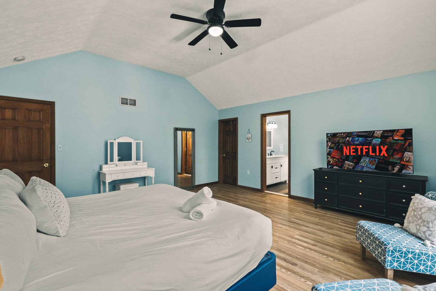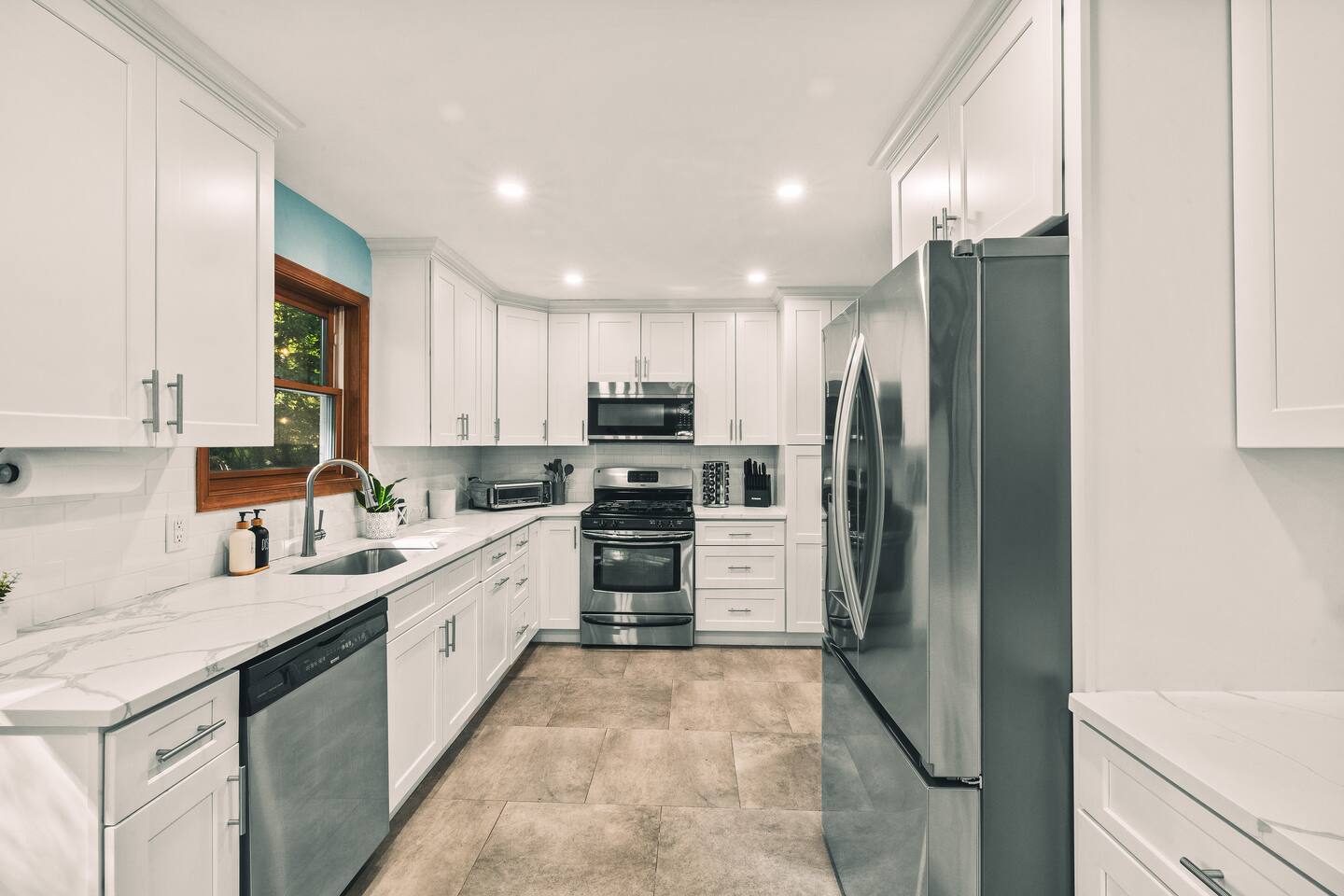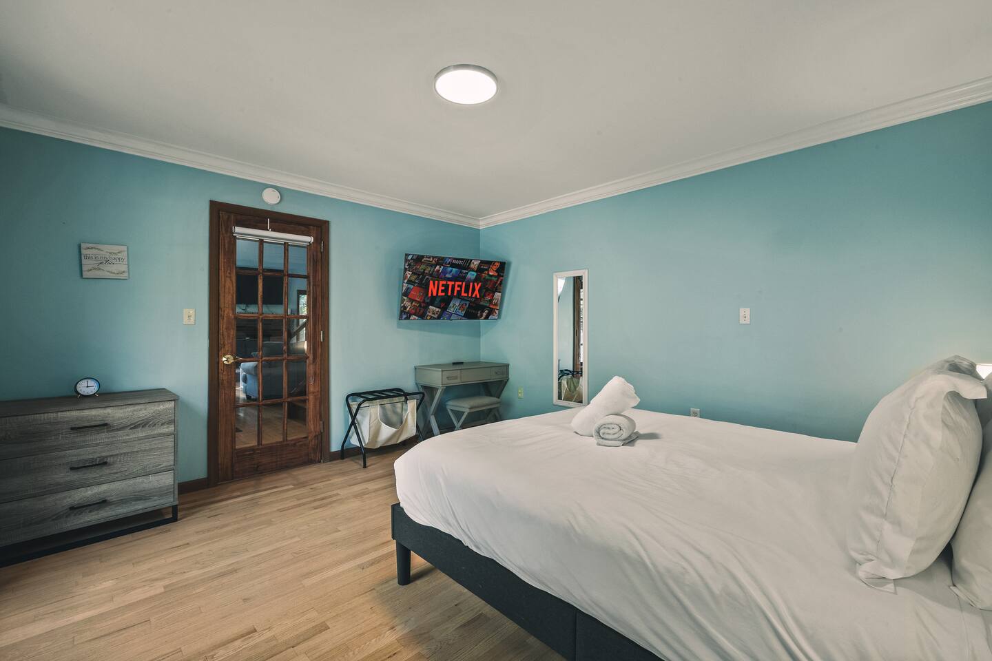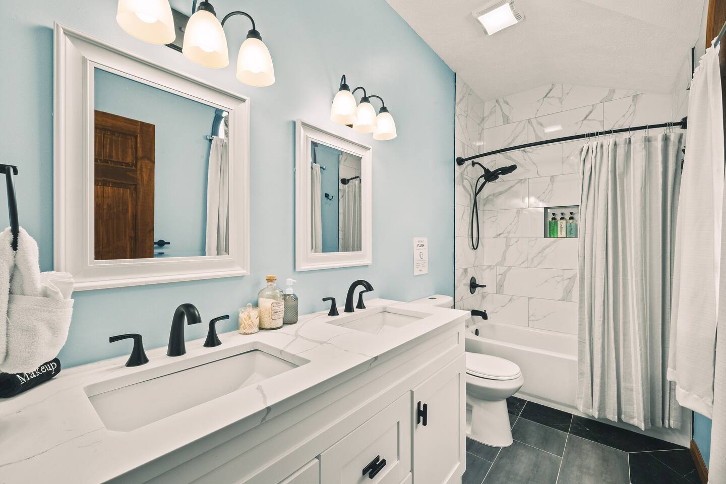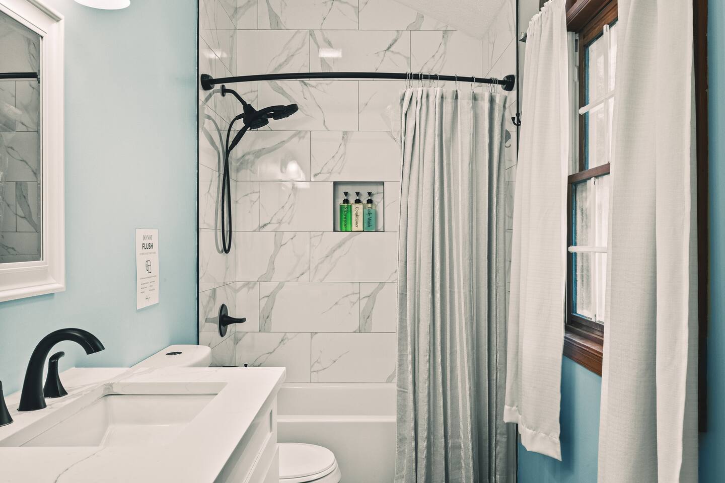 KEY FEATURES: ☀ 4 bedrooms, 7 beds plus queen sleeper sofa. Sleeps 12 very comfortably. ☀ 3 full baths, 1 half bathroom ☀ Only Small and Medium-sized dogs allowed (up to 50 lbs.) ☀ Central air for heating and cooling throughout the house. ☀ Modern kitchen; stainless steel appliances and kitchen island seating open to the dining area ☀ Sunny living room; comfy furniture, propane fireplace, flat-screen Smart TV ☀ Game room with pool, ping pong, wall mount hook & ring game, smart TV & seating area ☀ Great outdoor space: deck with propane BBQ, & table seating for 6, lounge seating for 5 around the propane fire table with propane space heaters! ☀ High-speed Wi-Fi ☀ Washer + dryer ☀ Free onsite parking in the driveway for up to 4 cars. ☀ HOA Access. ☀ After booking, we will send you a form to complete so we can submit the HOA renter permit on your behalf. ☀ Easy access to nearby attractions; Camelback Mountain, indoor water parks + outdoor activities ☀ Early or late check-out provided at $25/hr, only if we confirm it can be accommodated. ✅ Easy Check-In Process for your rental agreement, ID verification, & security hold It’s just like when you check in at a hotel and give your ID and security deposit to the front desk, except our front desk is online! It's super easy to complete on your phone! We use a web-based system called Happy Guest, and you’ll receive a personalized rental agreement, ID verification, and options of a simple security hold of $1,000 (which is not a security deposit) or a non-refundable $45 damage waiver fee to receive your arrival instructions. It’s simple: finish these steps, and you’re all set to enjoy your stay! Note: arrival info won’t be sent without completing these steps, and refunds aren’t possible if skipped. Your personalized guidebook will give you all the info about the home, my favorite local spots, automatic early check-in notifications, and sometimes even late checkout! You can even share it with friends and family! Got questions? Just message us anytime! ☆☆ BEDROOMS & BATHROOMS ☆☆ Our comfortable three (2) story, plus basement, home features four (4) bedrooms, each designed to provide a restful and productive stay. One bedroom is on the first floor with the remaining three (3) upstairs on the 2nd floor. The house has three (3) full bathrooms and one (1) half bath. All bedrooms provide plenty of natural light, bedside tables with lights and chargers for all your device charging needs. Each bedroom offers ample storage space for your belongings in the accessible closets, dressers, and luggage racks. The first floor bedroom has a Queen size bed. The three (3) bedrooms upstairs consist of a master bedroom with King bed and ensuite full bath, bunk beds with one (1) full and one (1) twin bed, bunk bed with three (3) twin beds, one being lofted. Additionally the house has three (3) bonus beds, one (1) Queen sleeper sofa in the living room, one (1) daybed in the loft and one (1) full size futon in the basement. ☆☆ KITCHEN & LIVING ROOM☆☆ The open-concept layout of the common areas makes it easy to feel like part of the action no matter where you are on either floor. The fully-equipped kitchen on the main floor is outfitted with a coffee machine, stainless steel appliances, including a refrigerator, stove, oven, and dishwasher, making it easy for you to cook a wonderful family meal as if you were at home during your stay. Whether you're enjoying a family dinner or a casual meal with friends, the indoor dining table that seats eight (8) plus two (2) seats at the adjacent kitchen island is the perfect spot to gather and share a meal. If you prefer to dine al fresco, step through the double doors onto the deck where you'll find a table for six (6) plus four (4) in the lounge chairs around the propane fire pit. The living room on the main level is the perfect place to relax and unwind after a long day of exploring the Poconos. Cozy up on the couches and watch your favorite shows on the flat-screen Smart TV, or enjoy a break from screen time with a good book. ☆☆ GAME ROOM☆☆ Head down to the basement and you’ll find our well-equipped game room. Whether gaming on the ping pong or pool tables or lounging on the couch to catch the game it's a perfect escape for those cold Poconos nights! ☆☆ OUTSIDE SPACE ☆☆ Escape to the beauty of the Pocono Mountains and experience the ultimate in outdoor living with our back deck featuring a dining table for six (6) plus seating for four (6) around the gas fire place, plus a gas grill for alfresco meals with family and friends. To top it all off, we have a (6) seater hot-tub that is now open for use! There is plenty of space to hang out in the backyard to enjoy the fresh air, play some fun outdoor games, play on the swings attached to the underside of the deck, or make s’mores around the gas-burning fire pit! This cozy home is in a great location just a short drive to nearby attractions, including Kalahari Resort, Camelback, Shawnee Mountain, Mount Airy Casino, Great Wolf Lodge, and more! ★☆ Book Today & Let Us Take Care Of You In East Stroudsburg! ☆★
